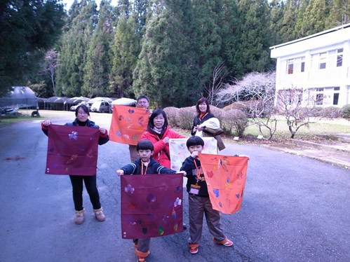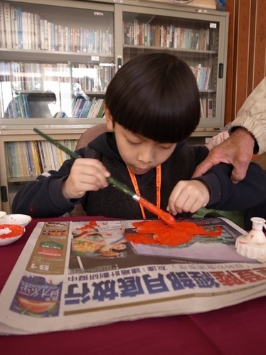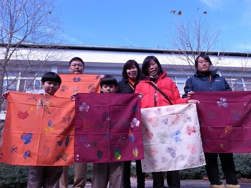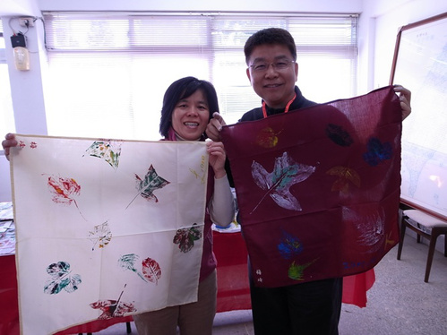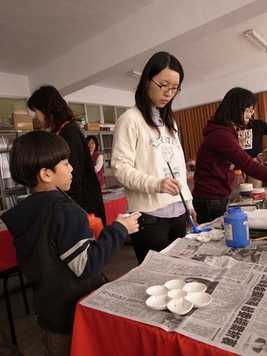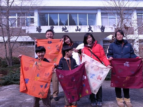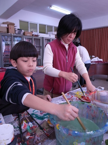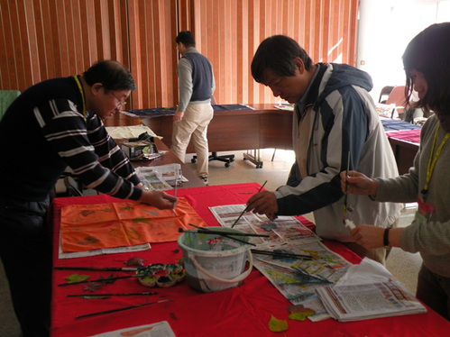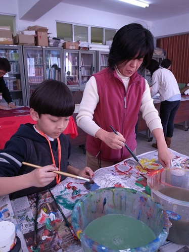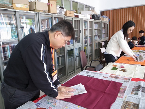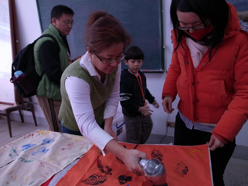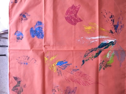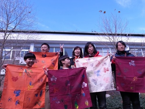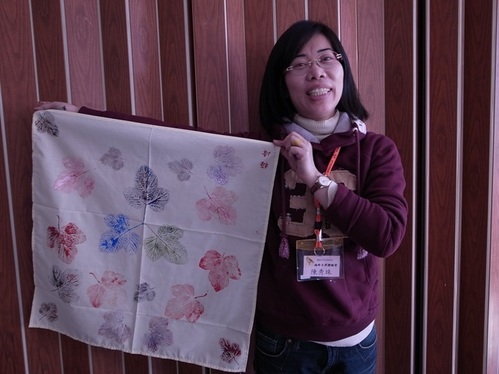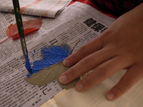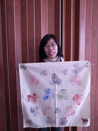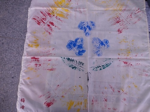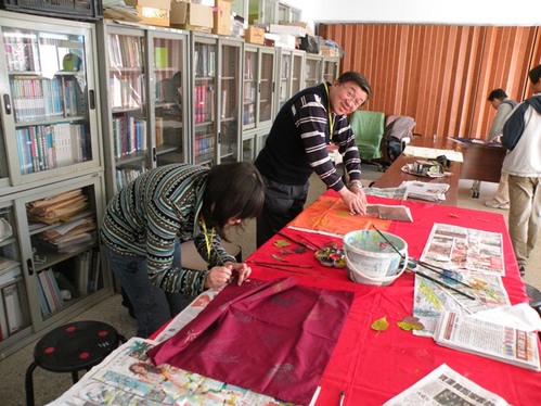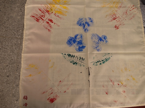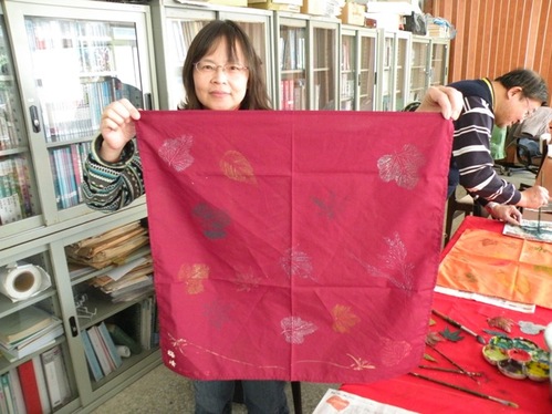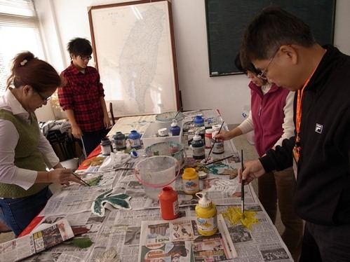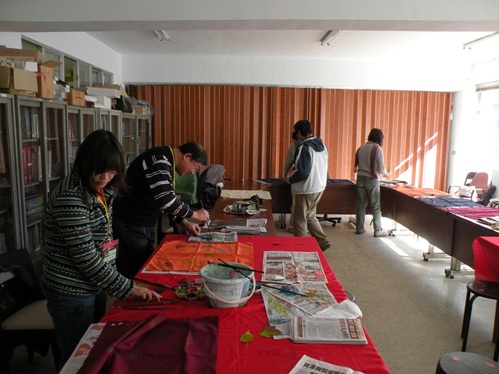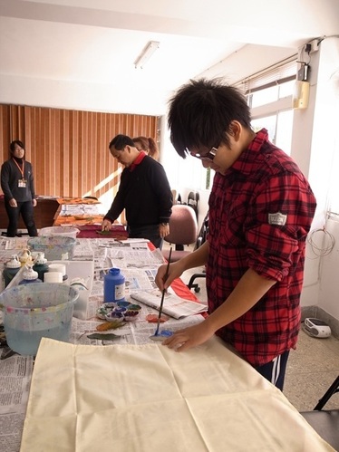 ↑第二隊的朋友們也開始製做彩繪頭巾了。