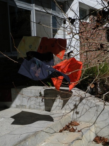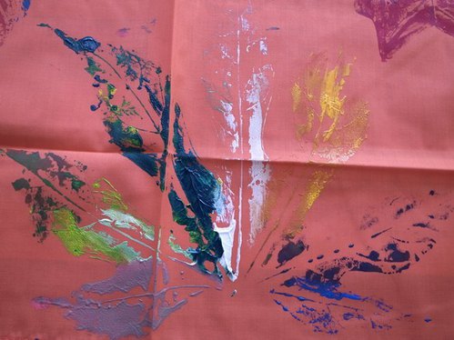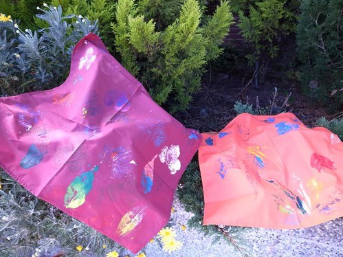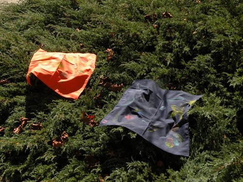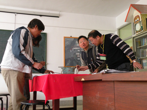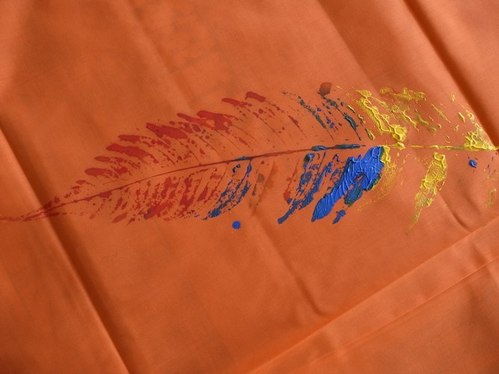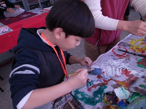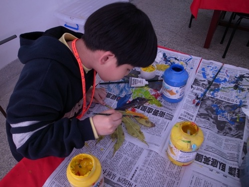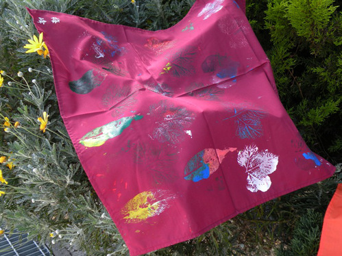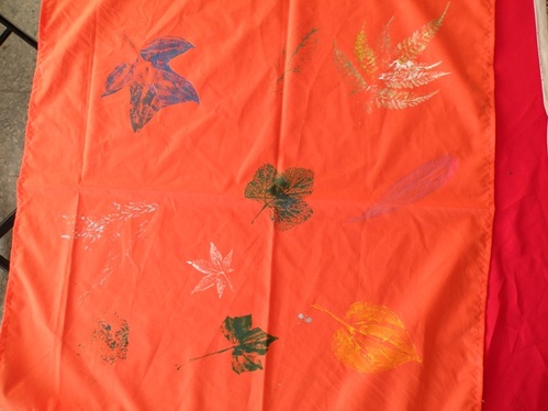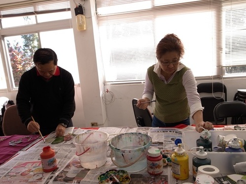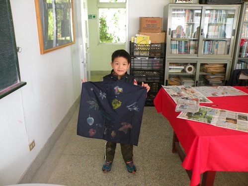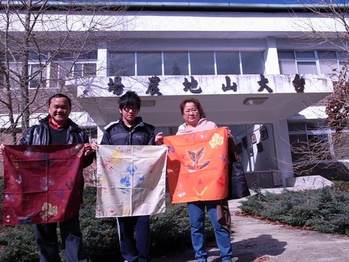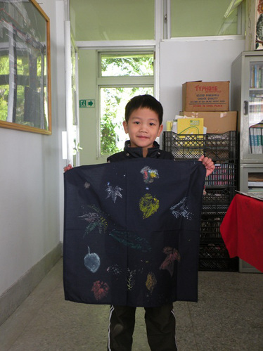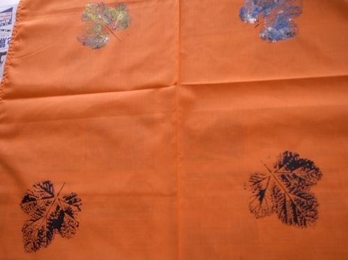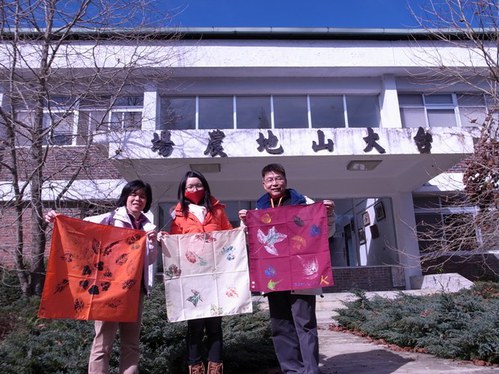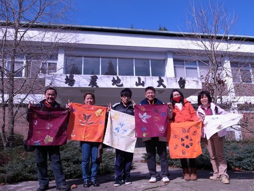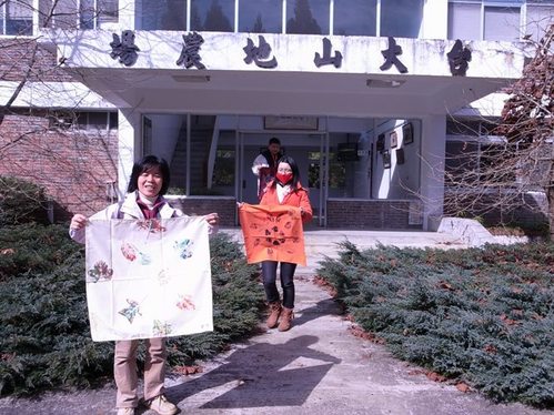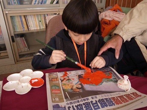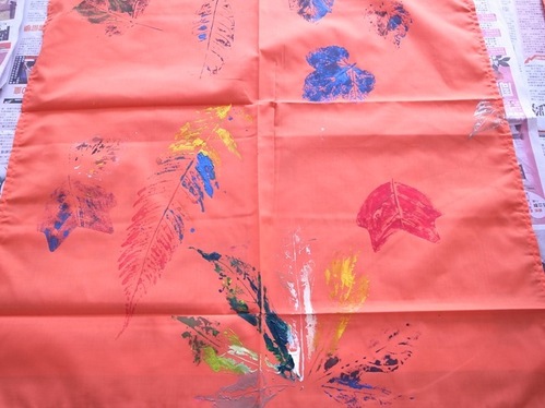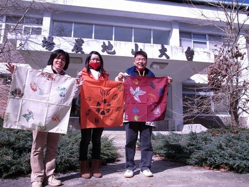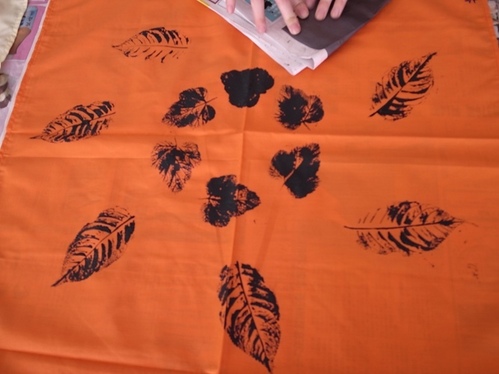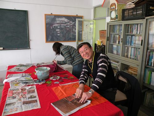 ↑第二隊的朋友們也開始製做彩繪頭巾了。