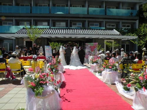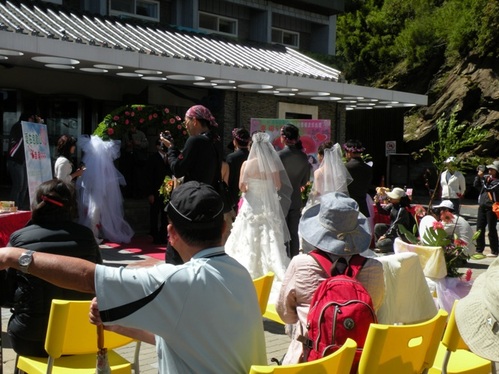 ↑由東勢林管處處長爲六對新人主持婚禮!