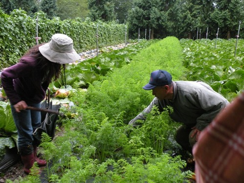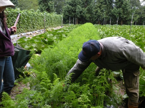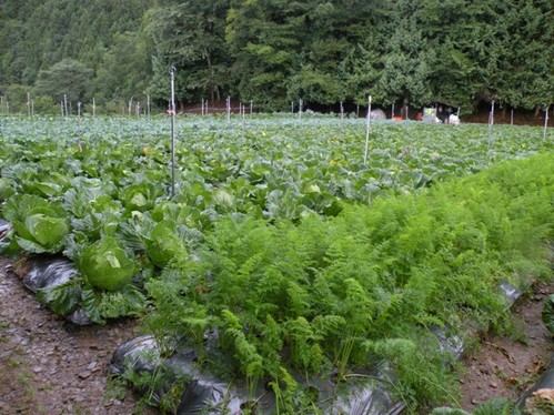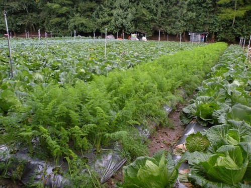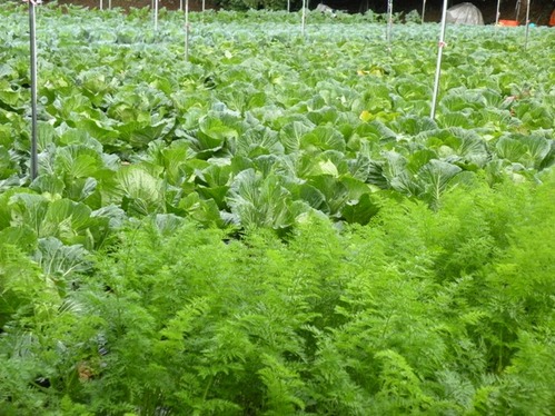 ↑菜地部份景致,最遠方那排綠色的牆是敏豆,細細的葉子是胡蘿蔔。