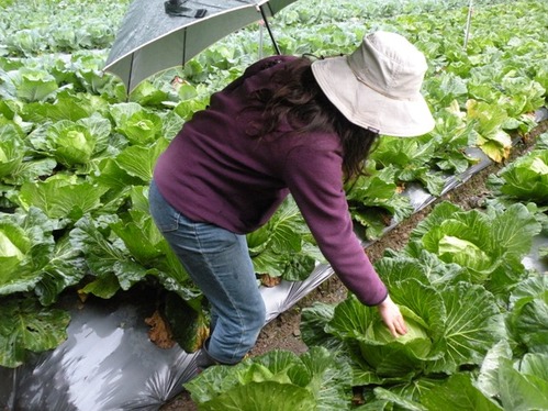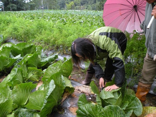 ↑解說員俐璇 終於砍下了一顆高麗菜。