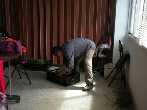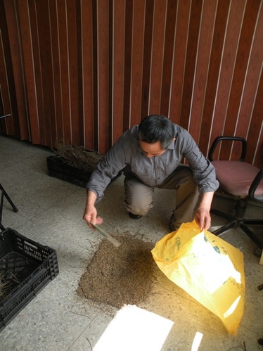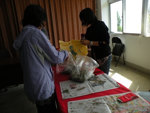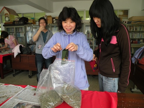 有沒有注意到,還有兩個人自願擔任“拔香草”的任務,幫大家把香草植物弄碎,以方便填塞入香草包。尤其是其中的一位專業先生,從踩紅豆的經驗裡想出了特殊、快速的方式,幫大家迅速的完成香草的蒐集工作,而獲致“香草哥”的稱號!