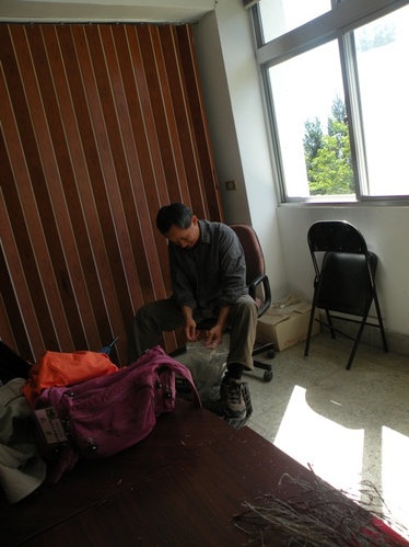 ↑其實很幸福啦!他們自願幫大家把香草弄碎。不過,到後來“小”男人專心去畫香包了,只剩下......