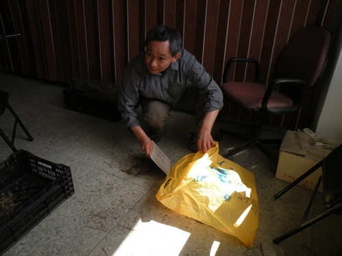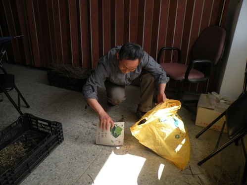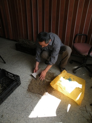 ↑再用厚紙板鏟起裝入袋子,夥伴們就有足夠的香草可以使用了。