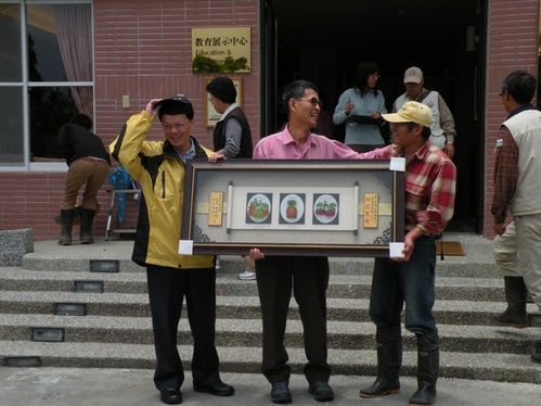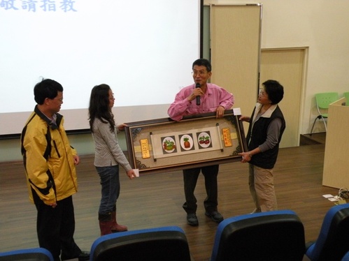 ↑在演講結束時,農場的同仁們特別準備了一個禮物送給林老師。