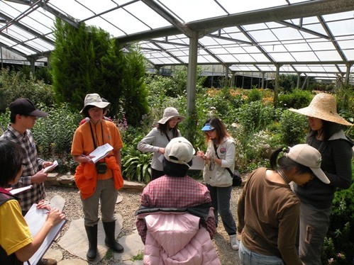 於是梅峰農場也努力的朝向英文解說的方向邁進。10.05.05這天,經過了昨天一整天在日月潭及蓮花池的觀摩學習,由解說員韻如帶領著大家,實地以英文講解著園區動線,才讓大家發現,若是沒有經常練習,要隨口說出心裡所想,可不盡是件簡單的事情呢!