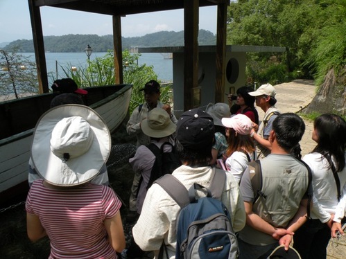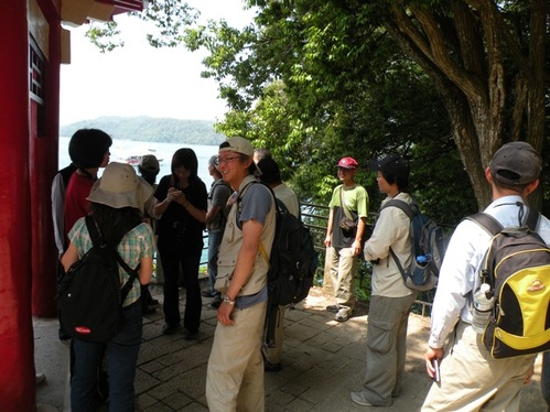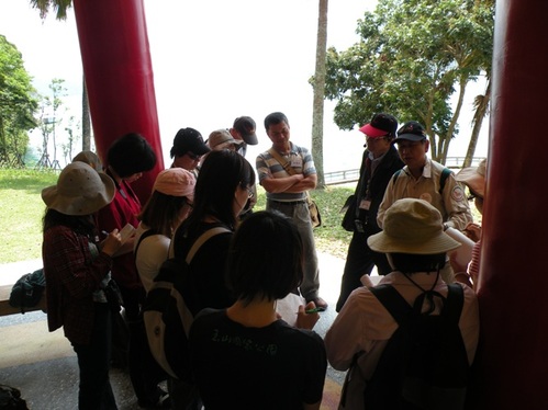 一大早九點,日月潭專業的英文解說志工曾英雄先生與資深解說員蘇健輝先生就準時的出現了,另外也有其他志工的陪同,帶領著我們進行著生動淺顯的解說,與如畫布般日月潭景致的陪伴下,我們度過了一個豐富、收益良多,並觸發了我們對英文解說興趣的美麗早晨。