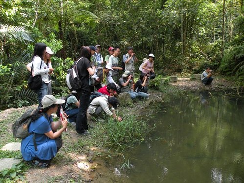 緊接著,匆匆吃過簡單的午餐,便驅車前往蓮花池研究中心,領受另一場精采絕倫的生態解說。這次的解說志工為熱心專業的羅樹海夫婦,他們帶著我們走了一段從來沒有走過的路徑,讓我們感受了從來不認識的蓮花池。