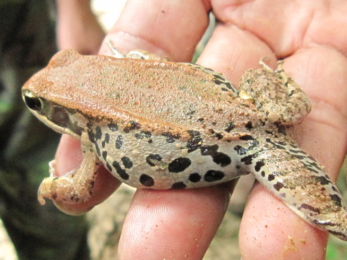 ↑解說員抓到一隻拉肚子吃西瓜,就是拉都希氏赤蛙啦!