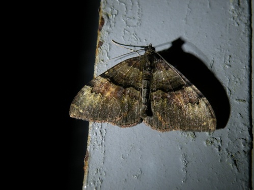 ↑近看時,翅膀上有著美麗金色線條的「夜蛾科\車厚翅蛾亞科Herminia grisealis (Denis & Schiffermuller, 1775)」