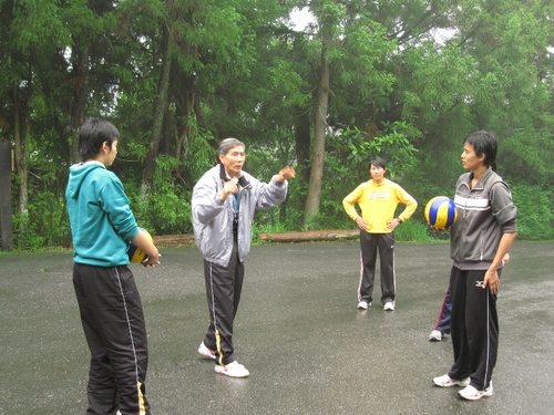 上圖為林教練正在指導選手們正確的托球姿勢。