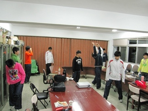 夜裡兩位助理教練利用過去賽程中的錄影帶與選手們進行分析及實地演練操作,在未來比賽或是練習時能有正確的姿勢及動作來作防守及攻擊;正向思考以面對每一場迎面而來的賽事。