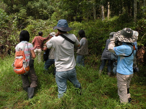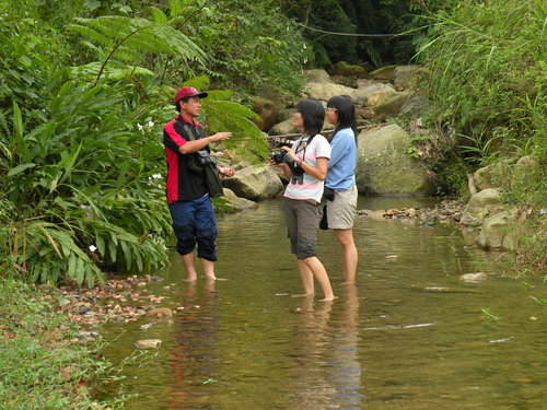 人手各捧著一本蜻蜓圖鑑,專注的依循著蔡老師夫婦的指點,讓各種蜻蜓的輪廓逐漸深刻的印在腦海。也繼而發現原來蜻蜓的世界是這麼的有趣!下次當你來到梅峰,就可以和解說員們一起蹲在黑水塘邊,一起觀察蜻蜓嘍!