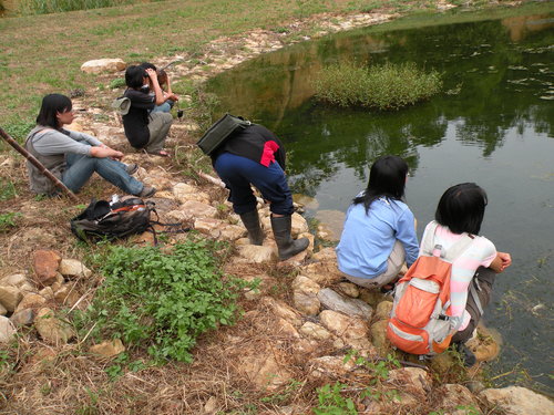 ↑看蜻蜓,順便觀察青蛙。這是兩隻金線蛙哦!