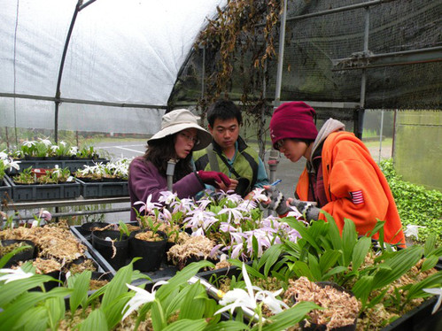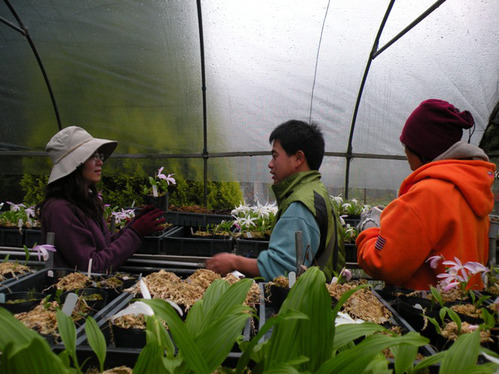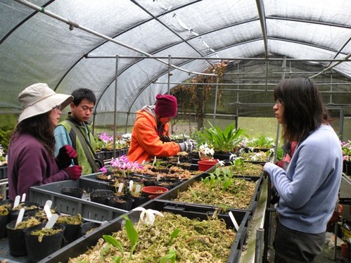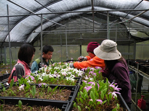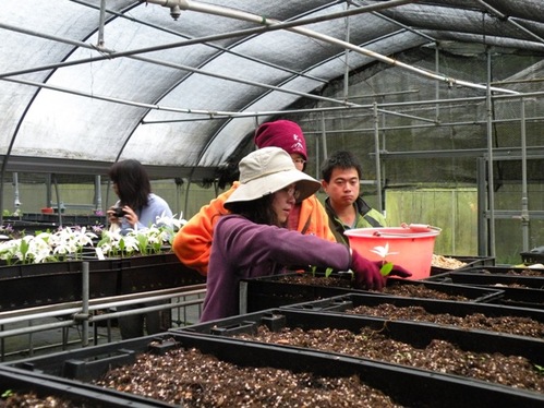解說員們平時除了帶隊,照顧自己的例管區域外,也有幾項負責或協助的研究工作在進行。這天,一葉蘭保姆阿雅,就帶著負責協助一葉蘭研究計劃的解說員阿土和薛前往一葉蘭的溫室進行說明,而其他有興趣的同事也一併前往。