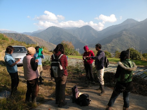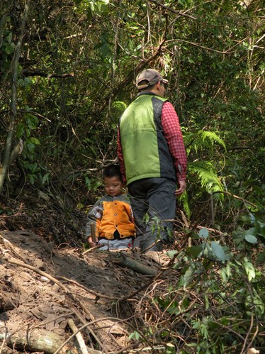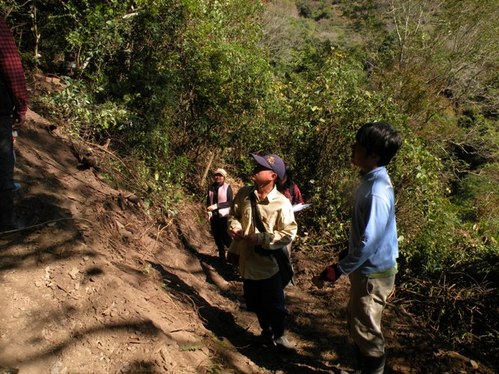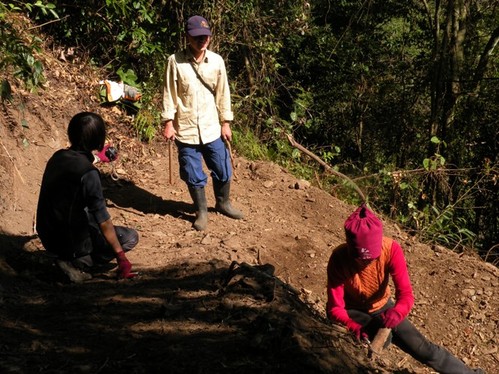 每個月解說員們的訓練項目裡有一天是要到春陽分場協助例管(場地整理),及進行解說訓練,通常是半天例管,半天解說訓練,解說訓練的部分由解說員輪流選定分場裡的解說展區進行分享。例管區域則由春陽分場工作同仁芳瑜及主任林大哥帶領分配。091222這天,解說員們抵達春陽分場後,便至學生宿舍後方的新闢步道協助剪除枝葉,整平路面等工作。休假的林主任帶著小兒子也一起來幫忙,讓工作現場的氣氛多了幾分活潑與俏皮。