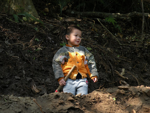 ↑小帥哥也手握鋤頭,幫忙貢獻一番心力哦!