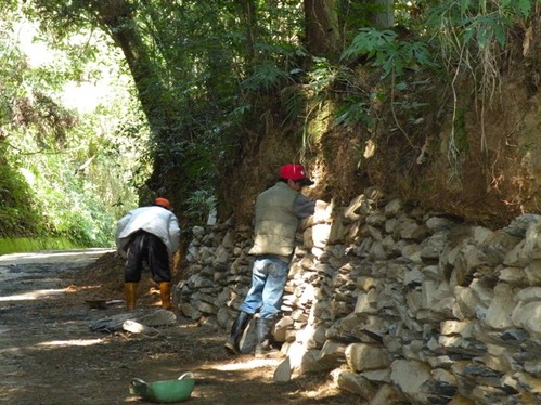 今年(2010年),為了迎接即將盛大舉行的桃花緣活動,管理組的同仁屋幹(胡正雄)和黃光明兩個大哥,特地利用小怪手的幫忙,將步道稍微拓寬,並運來許多梅峰的特產──大石塊,在步道旁側疊成漂亮的圍牆,傳統的工法,自然的鑲嵌於森林之間,完全嗅不出多餘的造作,這就算是一種在地的自然工法!