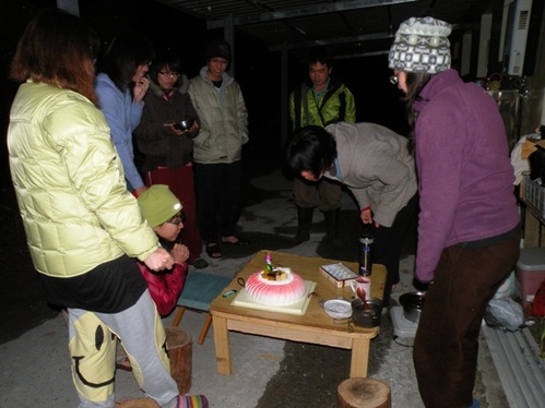 每當想到有人生日的時候,就會拜託有下山的同事上山時幫忙買個小蛋糕,希望可以給生日的同事一個驚喜,但通常是我們自己粗心的露出馬腳,壽星們總是事先就得知了訊息,不過蛋糕依舊是很美味的,尤其是和好朋友們一起享用。