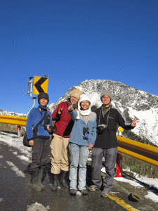 元旦假期,不少學員人在農場,但心卻在高高的合歡山,解說員們不忍心,只好向學員們揮揮手祝福他們看雪愉快!也但願擁擠的車陣不會澆熄他們看雪的熱情。