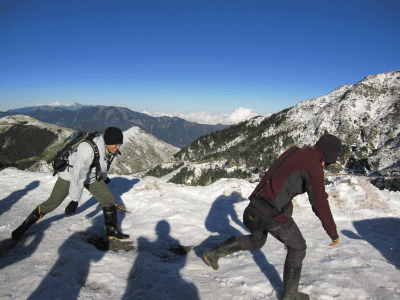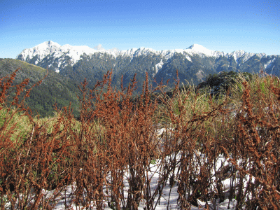 這天2010.1.4老天爺賞了個超級好的天氣,湛藍天空向我們招手著,東邊奇萊山頭白的發亮;此時不上山等待何時呢?