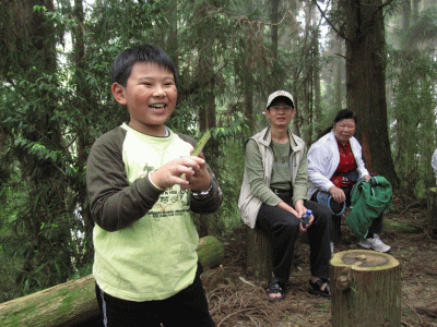 這天下午的園區導覽,我選擇先帶這兩隊來自不同的個人報名隊走入傻瓜亭,一同在柳杉林裡玩遊戲!