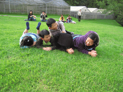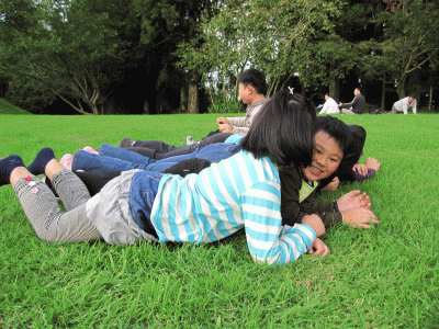 看著孩子們放下ㄧ切,恣意在草皮上打滾,相信會令許多大人羨慕不已!!