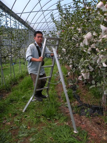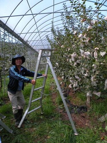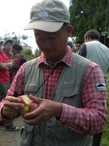 蘋果達人“巴撒”詳盡的對大家解說採果時的注意事項,例如梯子必須注意三支腳都固定於地面,確定穩固後,再開始使用;採摘前,先透過紙袋觀察蘋果底部是否轉色成熟,再決定是否拆開紙袋,採下這顆蘋果;如果不小心碰掉了蘋果,或者採下來後才後悔,都是必須自己負責的哦!因此,當您在選擇自己的蘋果時,每一顆都要非常專心致意,然後再滿足的把它們帶回家吧!