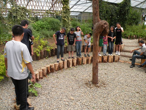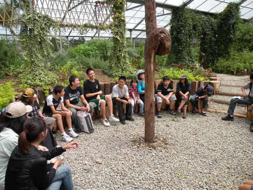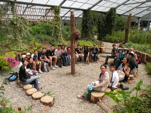 ↑溫帶花卉區的圓形劇場裡,大小朋友一起玩戲!