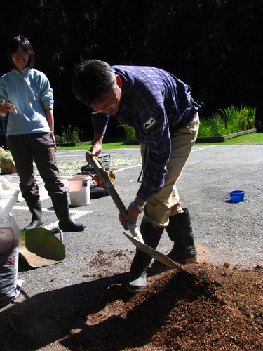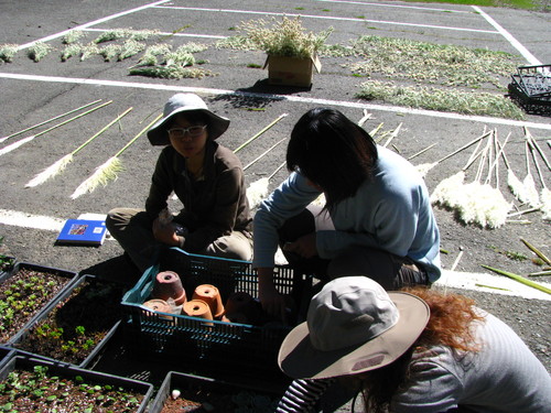 ↑咦!後頭地面在擺攤嗎?其實是趁著大太陽順帶曬一下乾燥花材,而前頭,就是花盆、植物等,準備好了就可以開始動手!