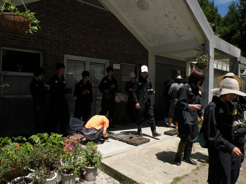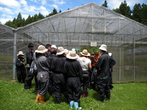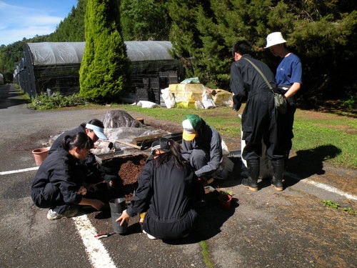 今年暑假,來到梅峰實習的園藝系學生,除了例行的相關課程;果樹、花卉實習;也協助農場各組進行相關園藝技術的操作;展示區的維護。