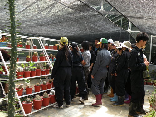 ↑多肉植物室室長郁葶為學生們介紹多肉植物室裡的寶貝們!