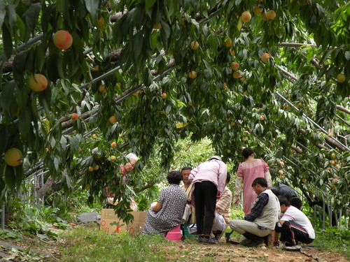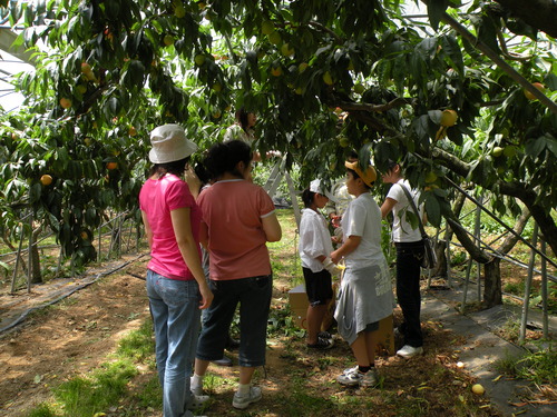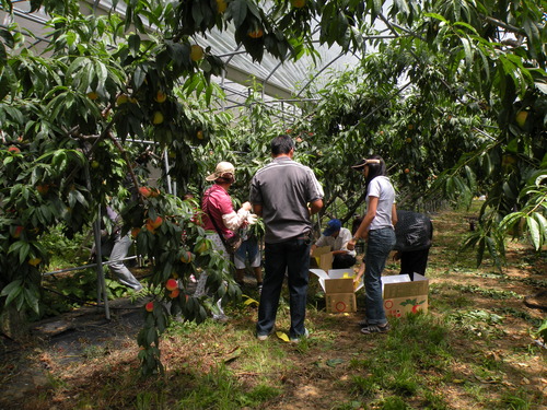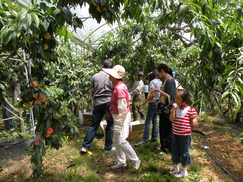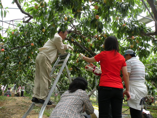 不過,大家最期待的還是隔天一大早的採水蜜桃活動。就讓我們來看看當天現場,解說員為大家拍下的採桃剪影吧!