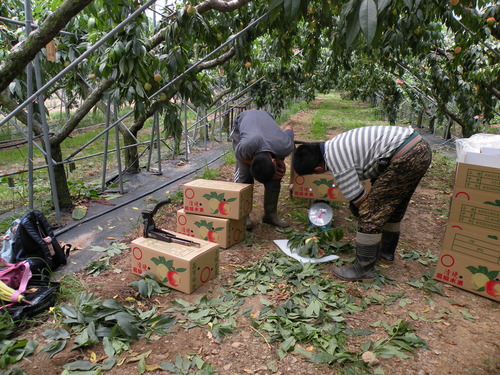↑一邊忙著包水蜜桃,一邊打電話跟親戚朋友報告蜜桃結實纍纍的景況。