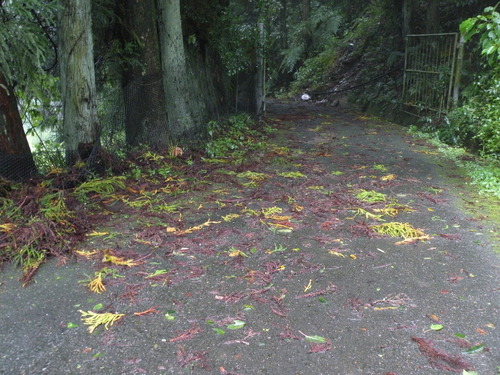 我們停了兩天電,然後除了倒了三棵白楊樹,緊急把一部分水蜜桃送至台北,部份的青菜水傷,地面多了許多黃綠加錯的柳杉殘枝外,沒有過大的損失。至於從埔里上來的道路,也僅有一小段不到二十公尺的土堆攔阻,在十一號已經搶通,一切的狀況都比預期的輕微許多,實在是老天爺的寬容對待。