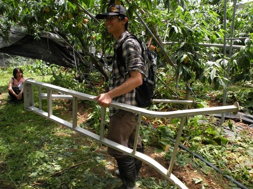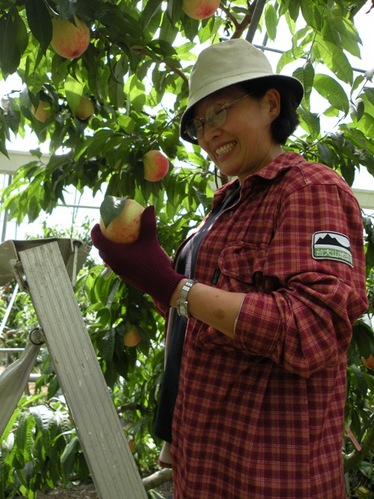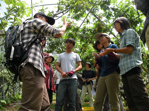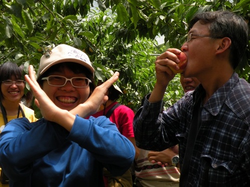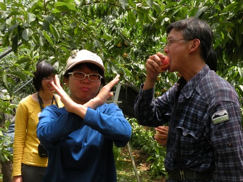 經營組果樹組的同仁們特別安排了一個上午的時間,與解說員們一起討論,演練實際的採果情形。(此次演練是以早桃“砂子早生”品種作為模擬演練對象)