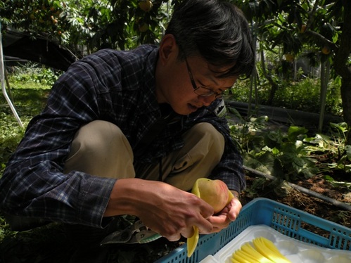 ↑手指頭盡量不要壓到果實,不然過幾天你的指印就會顯現出來嘍!
