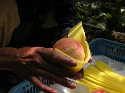 ↑要注意的地方是,必須把泡棉填塞箱子旁的空隙,以免水蜜桃受傷。