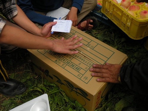 ↑要注意的地方是,工作人員已事先把空箱子的重量扣掉嘍!所以秤出來的都是水蜜桃寶寶們的實際重量哦!