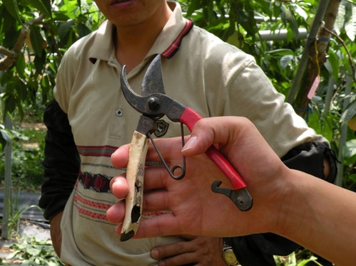 ↑修剪多餘的枝條,以免戳傷其他果粒。