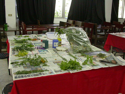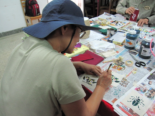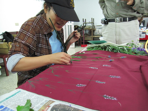 梅峰農場今年度第三次的志工訓練,準備了一系列精彩的課程,與解說志工們共同成長。第一天下午,解說員薛帶領著志工朋友們一起進行夏天的主題活動「香草包」的製作以及頭巾的型染、拓印。