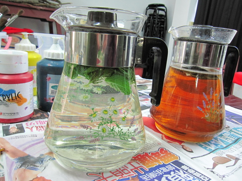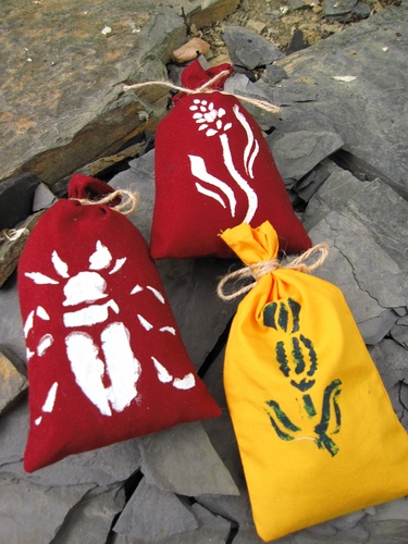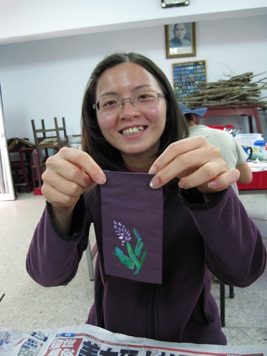 首先,由解說員解說各式香草植物,讓大家對香草植物有充分的認識,並搭配香草茶的品嘗,讓芳香充滿您的口鼻。正式開始製作時,選擇喜歡的香包布袋,利用型染的投影片(也可以使用解說員準備好的筆刀、切割墊、投影片,附有圖案的紙張,自己切割出圖案來製作型染),用壓克力顏料在上頭拓印下美麗的圖案。