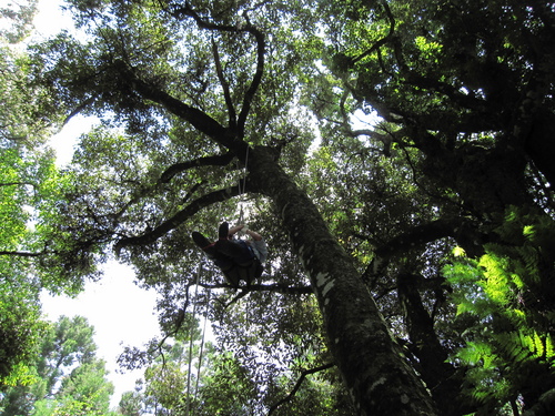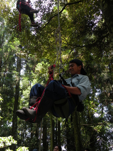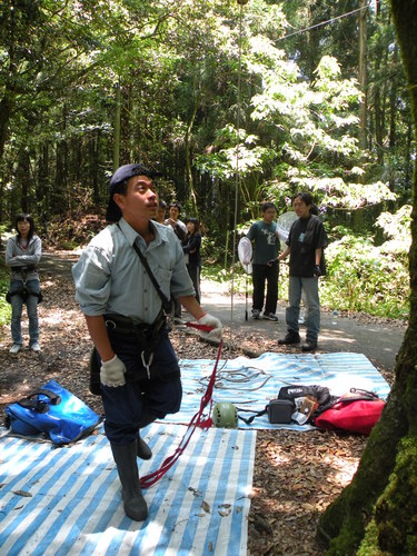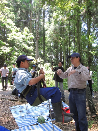 第二天上午,與解說員芭樂漫步園區,領受「梅峰場區內具特色及有趣植物」,然後遇見彰師大生物系師生正在體驗利用改良式的普魯氏攀登,觀察樹冠層昆蟲的課程,解說員家麒也上場親身嘗試!轉眼間兩天的志工訓練已然告終。天氣依舊晴好,帶著滿滿的收穫,很高興志工訓練,有您、我共同的分享!