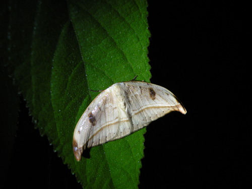 ↑造型像一個溫暖微笑的「五倍樹鉤蛾」