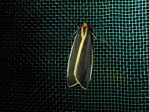 ↑顏色搭配令人印象深刻的「金棒鬚夜蛾」