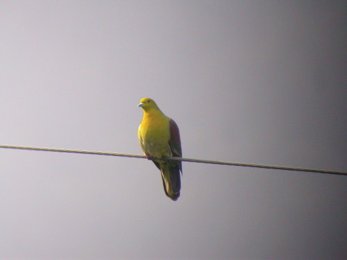 ↑會發出像泰山叫聲的綠鳩在電線上眺望