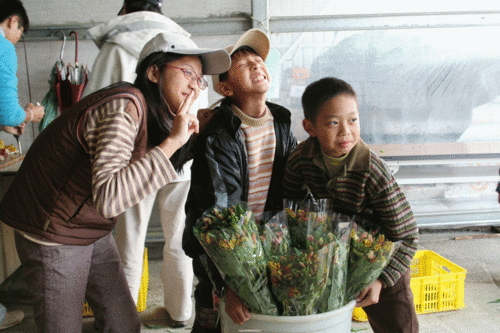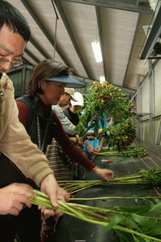 ↑百合水仙包裝台體驗中。