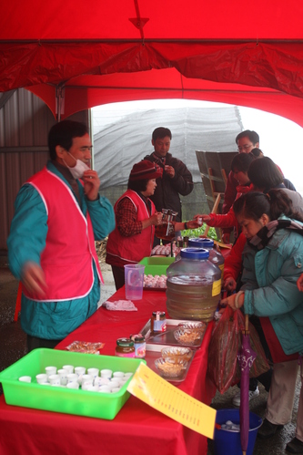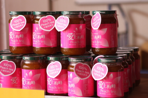 ↑試喝蘋果醋、水蜜桃醋、果醬攤位。