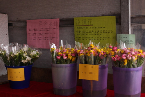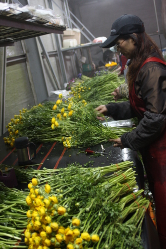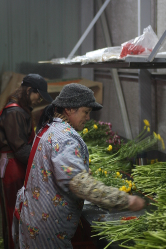 ↑忙碌的包花阿姨,正整理著準備送下山的花束。