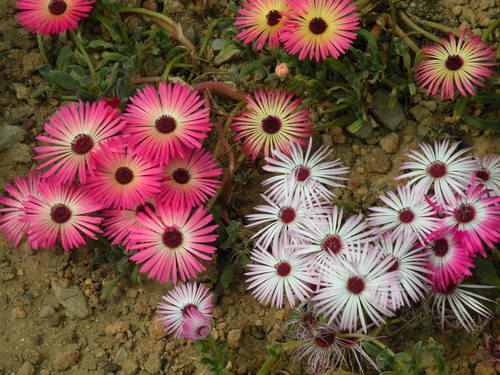 ↑花色多變的彩虹菊,在陽光下釋放著各式妍色。